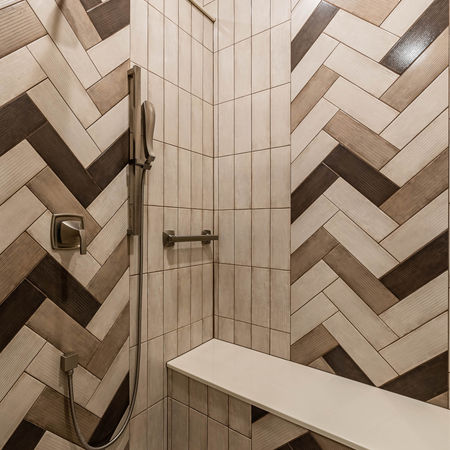 The master bath was completely redone with new painted cabinets and flooring. The existing shower and tub were removed, making room for a large spa-inspired shower, a dedicated makeup table, and additional cabinetry for storage of linens and other supplies.